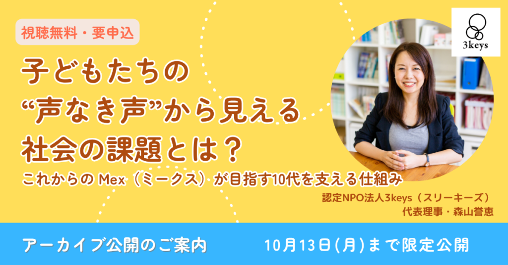 認定NPO法人3keysは、生まれ育った環境によって「子どもの権利」が保障されない子どもたちをゼロにします。