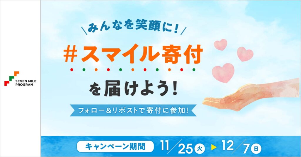 - キャンペーン投稿をリポストまたは引用ポスト(「#スマイル寄付」をつけて)